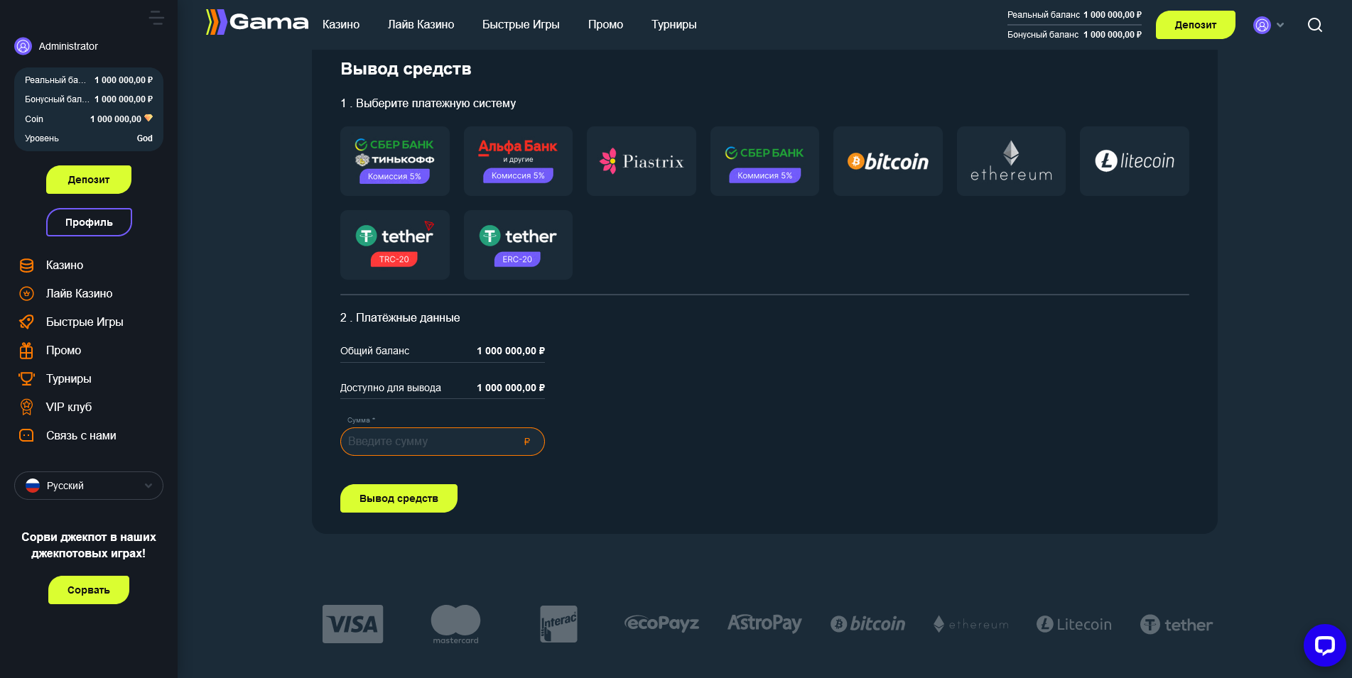 Обработка заявок на вывод денег